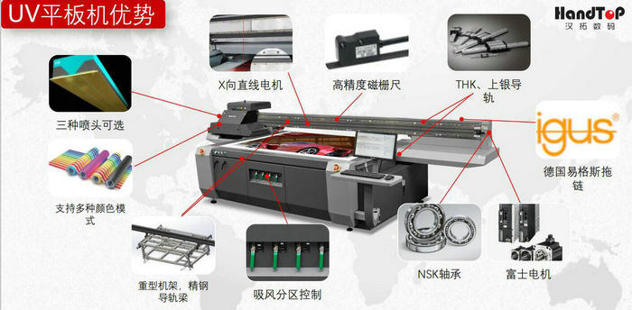 接触过数字喷墨设备的朋友应该知道,一个完整的UV打印机体系是由喷头、控制系统(板卡)、UV油墨、机械电气、供墨系统、RIP以及喷印介质组成的。目前国内众多的UV打印机厂家中,除了一些能够同时做卷材打印外,基本上都还是以UV平板打印机为主。而这些厂家中,掌握机械电气和供墨的最多,毕竟这是最低的技术门槛,但能同时掌握喷头、板卡、油墨此类环节的技术和解决方案的厂家则少之又少。